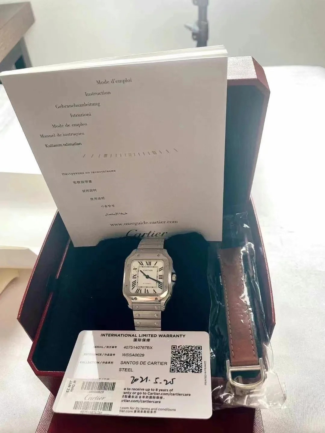 Brand:CartierModel:SantosReference:WSSA0029Movement:AutomaticCaliber:1847 MCMaterial:Stainless SteelDiameter:35.1mmClain Length:162mmStrap Clasp:Concealed Double Floding Clasp
