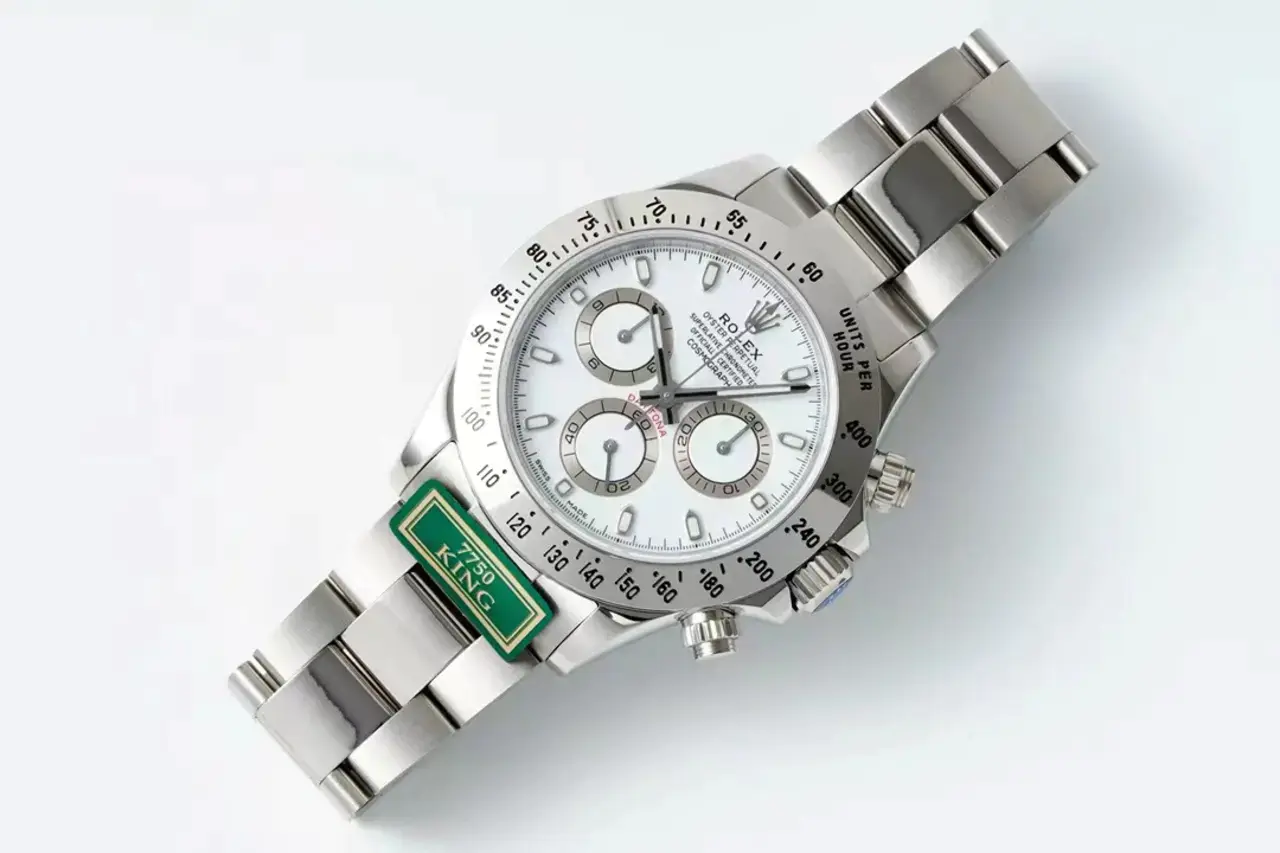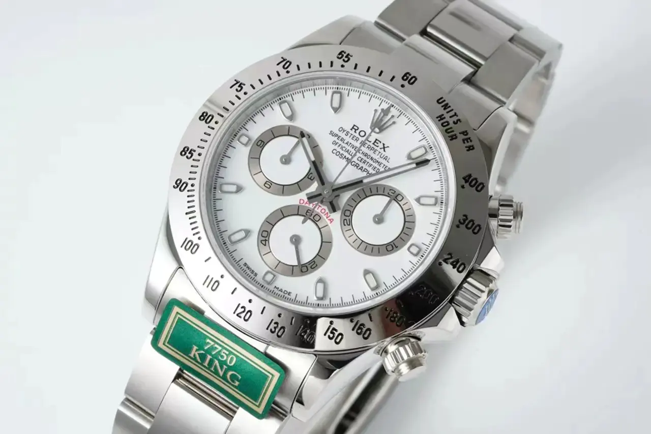 A key part of the model’s identity is the bezel moulded with a tachymetric scale for measuring average speeds of up to 400 miles or kilometres per hour. Blending high technology with sleek aesthetics, the black bezel is reminiscent of the 1965 model that was fitted with a black Plexiglas bezel insert.