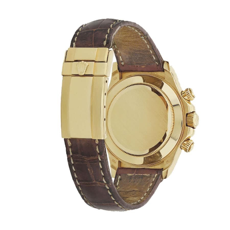 This Rolex Daytona Rainbow Gold Replica is a stunning watch. It features a 904L stainless steel case with a rainbow bezel. a sapphire crystal. and a 40.00 mm size and 12.4mm thickness. The movement is an automatic caliber 4130 with a 60-hour power reserve and a precision of -3/+3 sec/day within COSC certification limits. The bracelet is a 904L stainless steel oyster with adjustable links and a fold clasp. The dial is white with stick and dot indices and stick hour-markers and hands.
