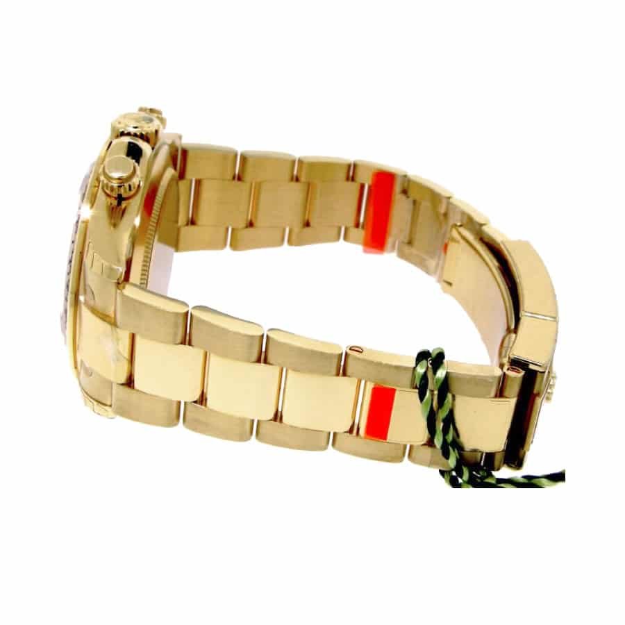 This Rolex Cosmograph Daytona Oyster Yellow Gold Black Dial 119608-0009 Replica is a high quality watch. It features a 904L stainless steel case with a yellow gold color and a sapphire crystal. The bracelet is also made of 904L stainless steel with an adjustable link and a folding clasp in yellow gold. The black dial has stick and dot indices and 904L stainless steel stick hands.