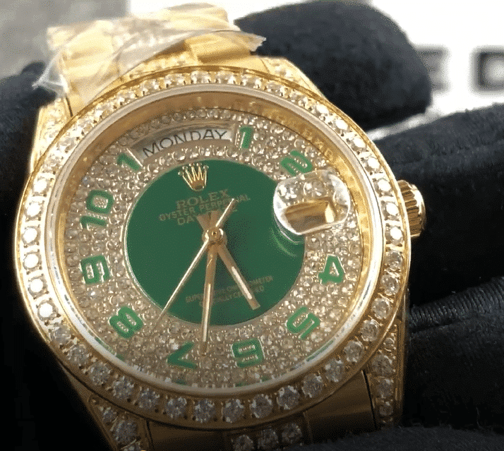 Rolex Datejust Yellow Gold Green Dial Iced out 118348 Replica