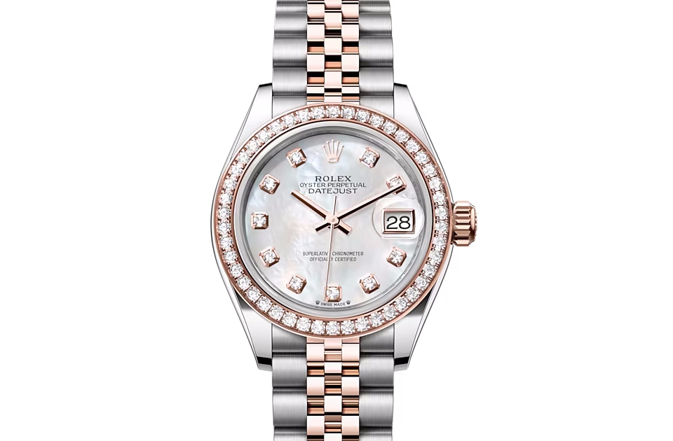 LADY-DATEJUST-(Oyster, 28 mm, Oystersteel, Everose gold and diamonds)