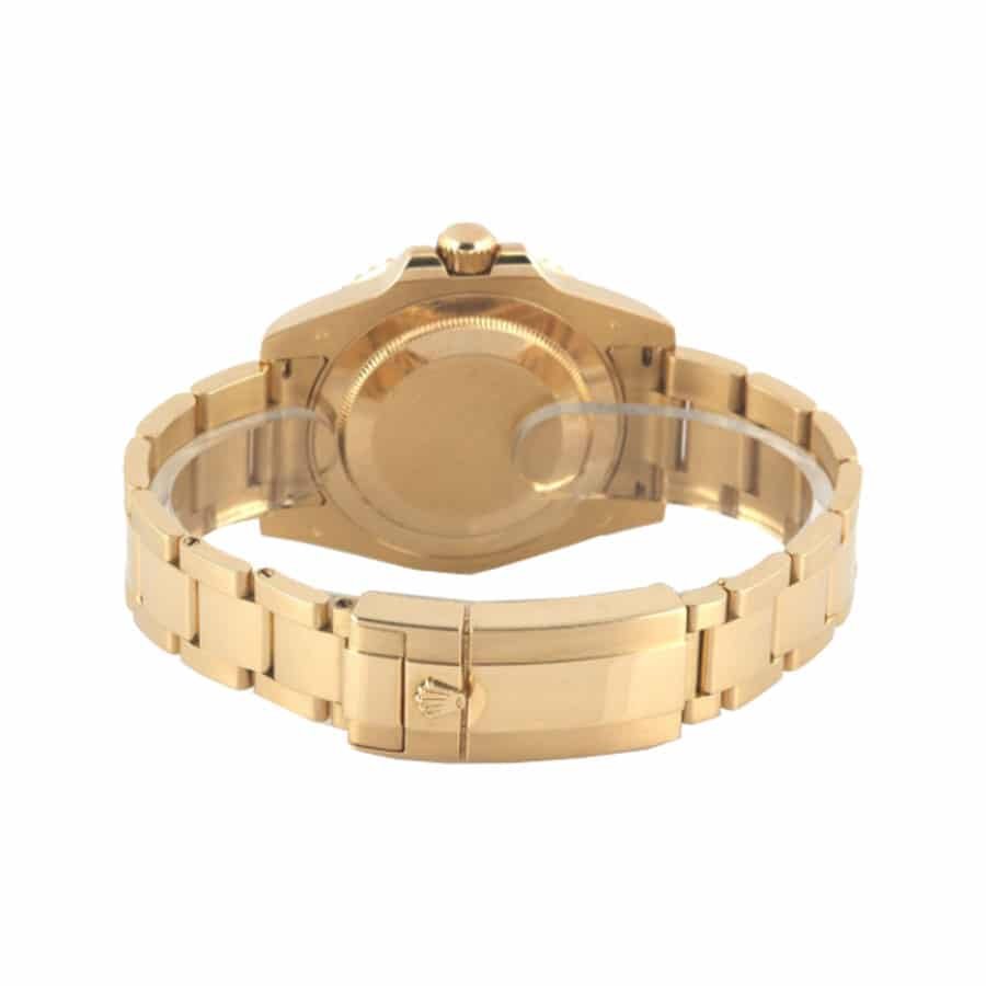 This Rolex GMT-Master II 116718LN Gold Watch Black Dial Oyster Replica is a stunning watch. It features a 904L stainless steel case with a black bezel and sapphire crystal. The movement is an automatic caliber 3186 with a power reserve of 60 hours and a precision of (-3/+3 sec/day) within COSC certification limits. The bracelet is also 904L stainless steel with an adjustable link and a fold clasp.
